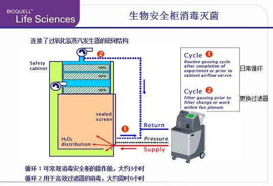 Bioquell的消毒設(shè)備和服務(wù)可以為用戶選擇提供多種解決方案, 事實(shí)上Bioquell過(guò)氧化氫蒸汽發(fā)生器就像一臺(tái)既可以自動(dòng)也可以手動(dòng)操作的**單反相機(jī),當(dāng)您熟練掌握使用方法以后,可以自行開(kāi)發(fā)更多不同的應(yīng)用,為您的投資創(chuàng)造更大的價(jià)值對(duì)于三級(jí)生物安全柜可以將蒸汽通過(guò)安裝好的傳送艙口,通過(guò)小型供風(fēng)高效過(guò)濾器噴射進(jìn)艙內(nèi),由排氣管連接返回的蒸汽形成閉合回路,將供氣和排氣過(guò)濾器一并消毒。