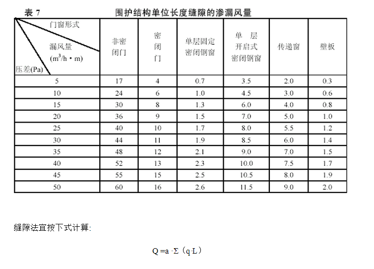 1 選用縫隙法來核算滲漏風(fēng)量,既思考了潔凈室圍護(hù)結(jié)構(gòu)的氣密性,又思考了室內(nèi)保持不一樣的壓差值所需的正壓風(fēng)量。因而,縫隙法比按房間的換氣次數(shù)預(yù)算法較為合理和準(zhǔn)確。 單位長(zhǎng)度縫隙滲漏空氣量用公式核算是對(duì)比艱難的,一般是經(jīng)過不一樣型式的門、窗進(jìn)行屢次實(shí)驗(yàn)的數(shù)據(jù)核算后得出的。表 7是對(duì)G內(nèi)潔凈室的 20多種常用的門、窗在實(shí)驗(yàn)室進(jìn)行了很多的實(shí)驗(yàn),獲得的數(shù)據(jù),盡管這些年潔凈室門窗的資料和型式有很大的開展,但現(xiàn)在還有有些潔凈室依然選用鋼制密封門窗。故表中數(shù)據(jù)仍可供規(guī)劃時(shí)參閱。