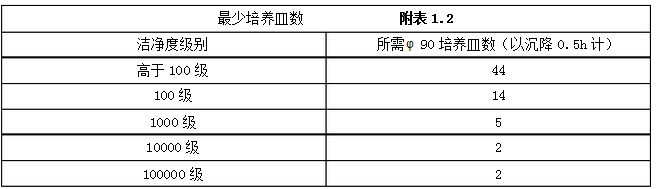 沉降菌測定時(shí),培養(yǎng)皿應(yīng)布置在有代表性的地點(diǎn)和氣流擾動(dòng)極小的地點(diǎn),培養(yǎng)皿數(shù)可與按附表1.1確定的采樣點(diǎn)數(shù)相同,但培養(yǎng)皿**少數(shù)量應(yīng)滿足附表1.2的規(guī)定。 #p#分頁標(biāo)題#e#